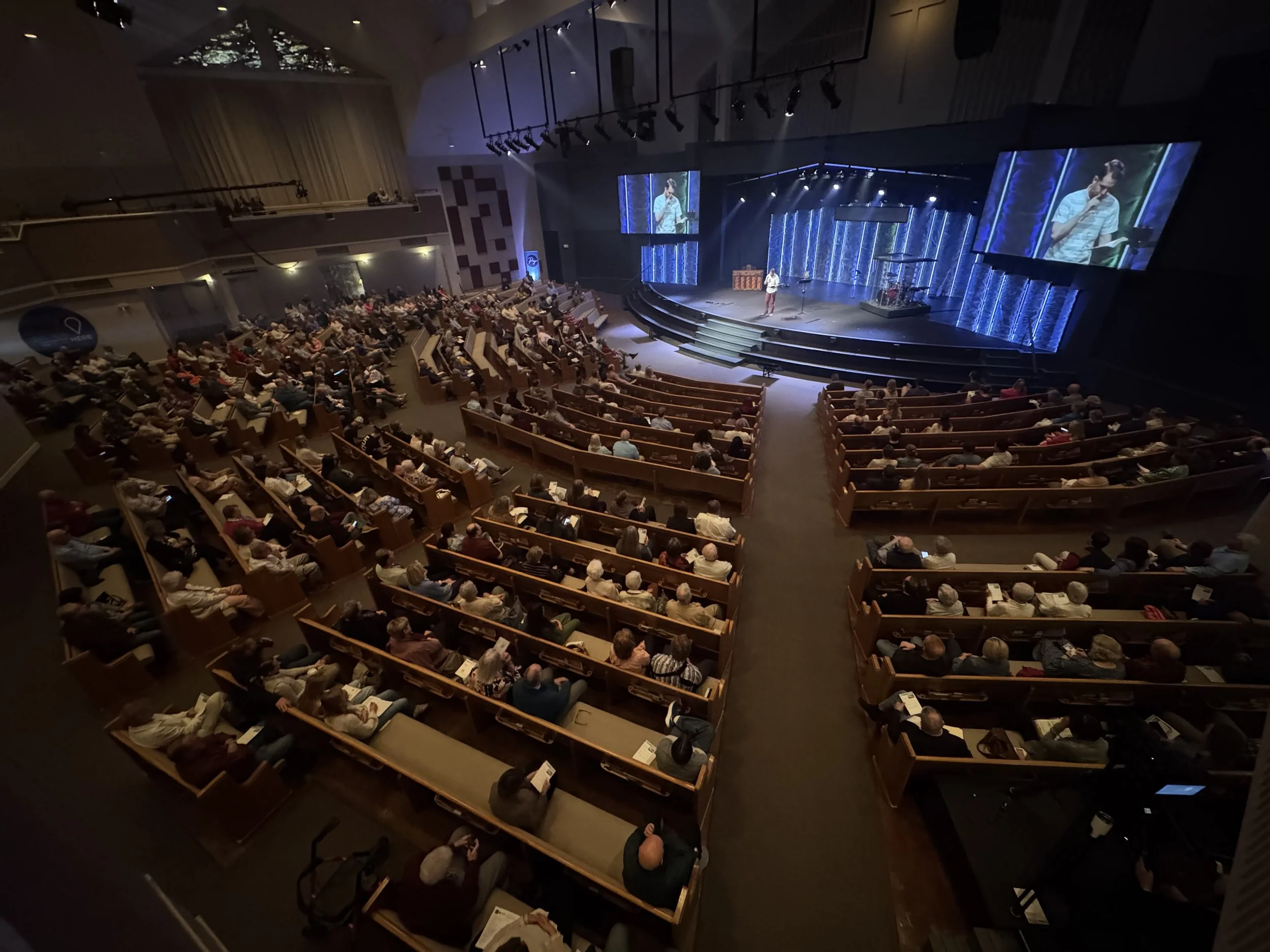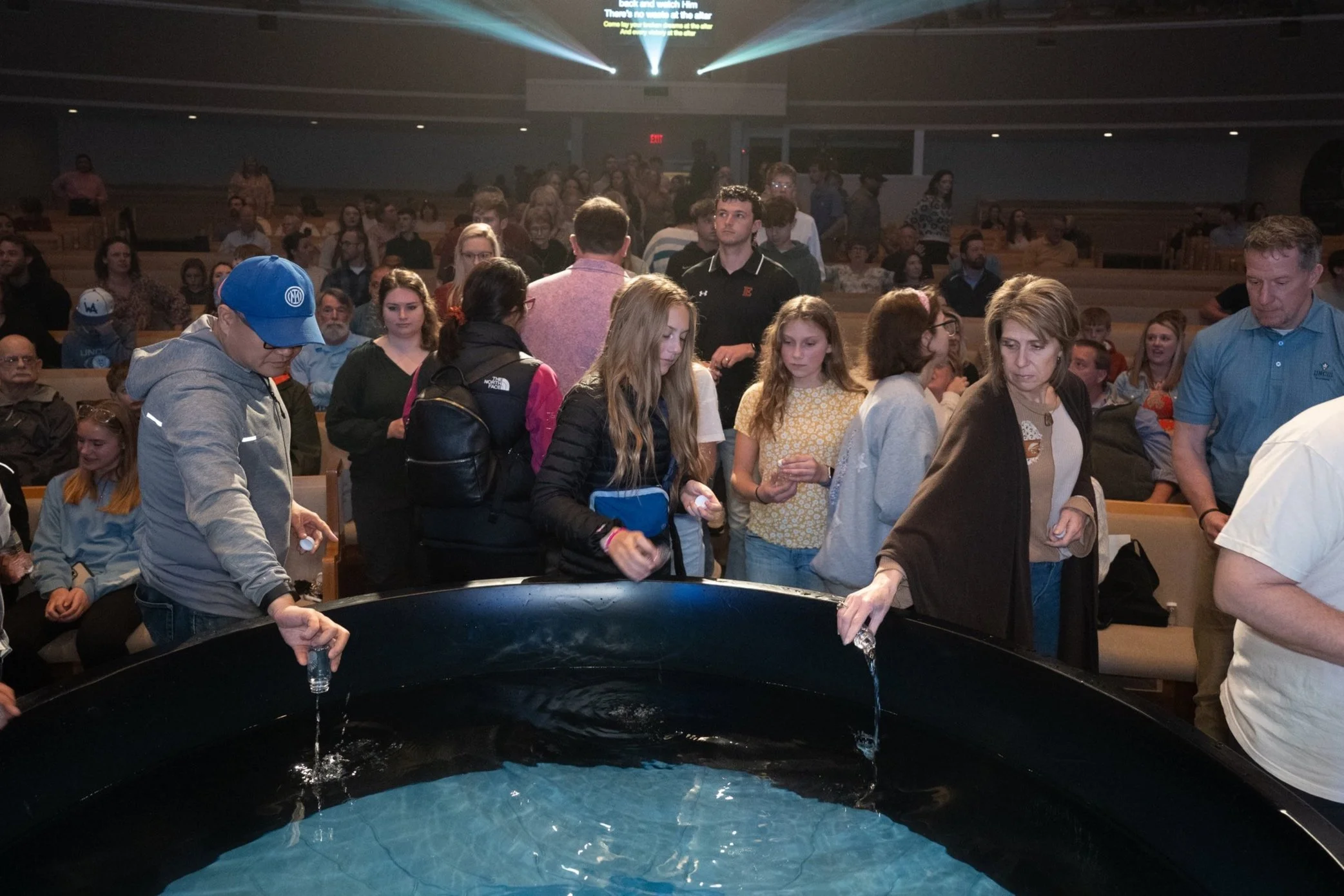 In March 2025, we held our first Sunday baptism service for adults in our Worship Center. This service provided an intimate setting for baptism, allowing our congregation to be involved with the sacrament by pouring water into the baptismal font to signify their role as the “big C” church walking with those being baptized (see photo).